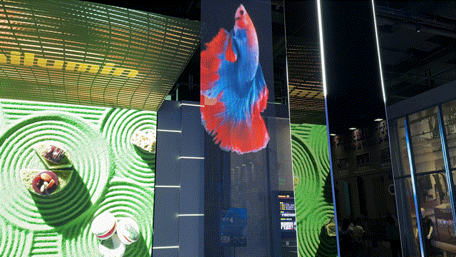 正在功能上,Micro LED手艺,极小的LED晶体尺寸,以小于 50 微米的空间占领,确保了通明结果上实现70%~93%的通透率。实正给消费者以“空间无物”的既视感。同时,极小LED晶体也便于摆设更高的显示像素密度,让全息立体画面更为清晰逼实,将通明显示从保守的大空间、远距离旁不雅使用,带入到近距离、面前旁不雅时代。以至,以此手艺为根本,洲明科技还推出了通明全息一体机、桌面级AI全息交互终端等差同化品类。正在形态上,通明是根本,但要满脚“肆意安拆”还需要轻薄。Udesign SV 全息通明屏每平米分量不外5公斤、厚度不外2毫米,不需要额外的特殊承沉布局,能够肆意“吊挂天花板”、“贴合幕墙”。正在够轻够薄的前提下,其采用特种光学材料和MIP封拆、MIP packaging布局,实现了产物布局强度、概况抗损抗污能力的跃升,产物使用对水电气没有出格需求、对洁净工做也没有额外承担。核能上,Udesign SV 全息通明屏是实正的低温冷屏,贴合玻璃幕墙,不消担忧冷热膨缩对布局平安的影响;其具有7000nits高亮,正在90%以上高透下,仍然能供给色彩明艳、对比明显的立体全新影像,确保画质显示正在优良照明前提和透光率下的超卓沉浸感。Udesign SV 全息通明屏另一个初创性的立异是“支撑铰剪裁剪异形外形”!可弯曲、可裁剪、支撑1000/1200毫米大模组,让异形创意设想、做为一款每个像素都需要驱动电流的显示屏,若何实现可裁剪的呢?洲明科技为此设想的AM MiP每个像素点都具备的存储单位,无需持续供电。这种全新、判然不同的像素功能单位布局,连系AI驱动下的智能算法,处理了异形显示驱动节制的题,实现了产物“肆意裁剪”。